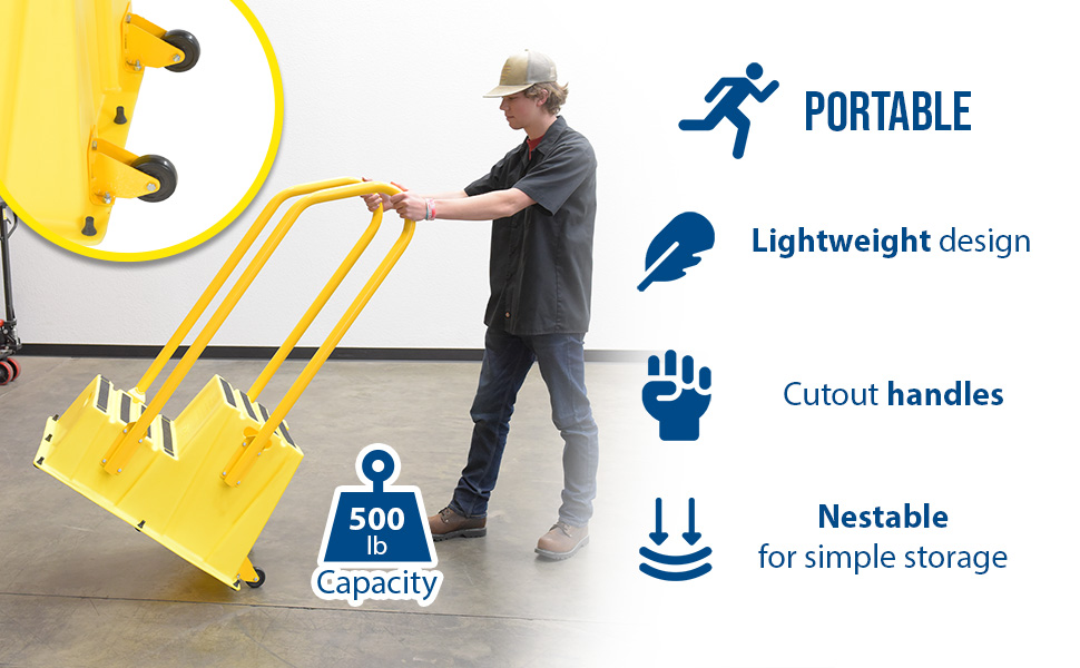 SPN-2-YL-HR-PO SPN-2-YL-HR-POPolyethylene Nestable with Handrails Casters 2 Step 500 Lb. Capacity YellowUniform Capacity (lb.): 500