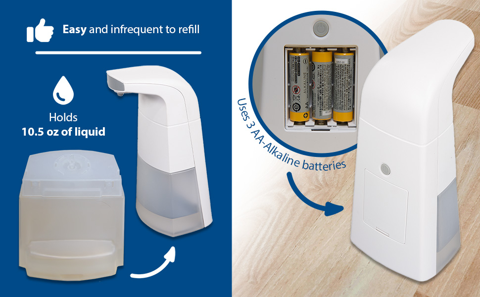 PHS-ALSD-01 PHS-ALSD-01Plastic Automatic Liquid Sanitizer Dispenser 10-1/2 Fluid Ounce Capacity WhiteBatteries: (3) AA-Alkaline