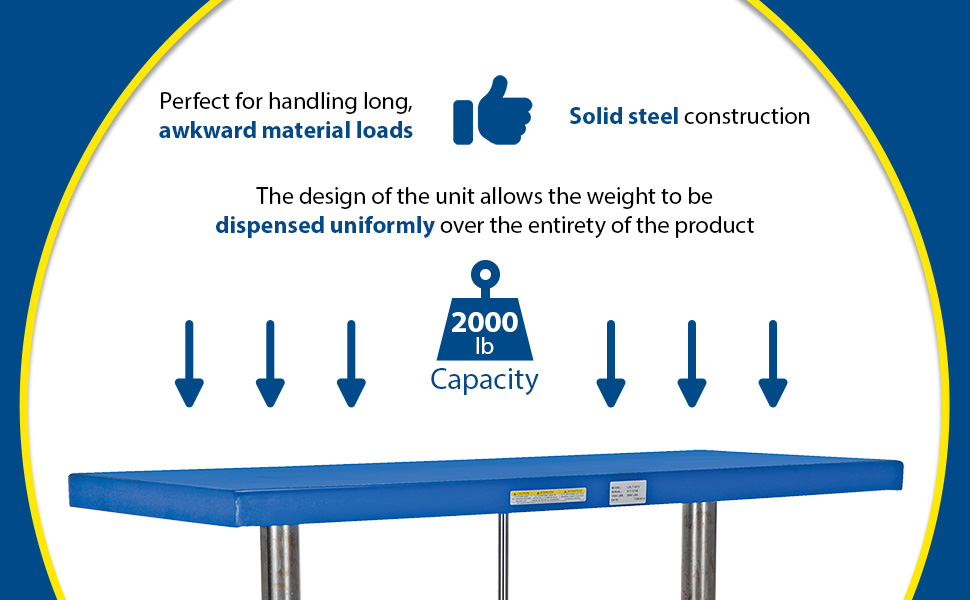 LDLT-2072 LDLT-2072Steel Ergonomic Long Deck Cart 20 In. x 72-1/4 In. x 49 In. 2,000 Lb. Capacity BlueUniform Capacity (lb.): 2000