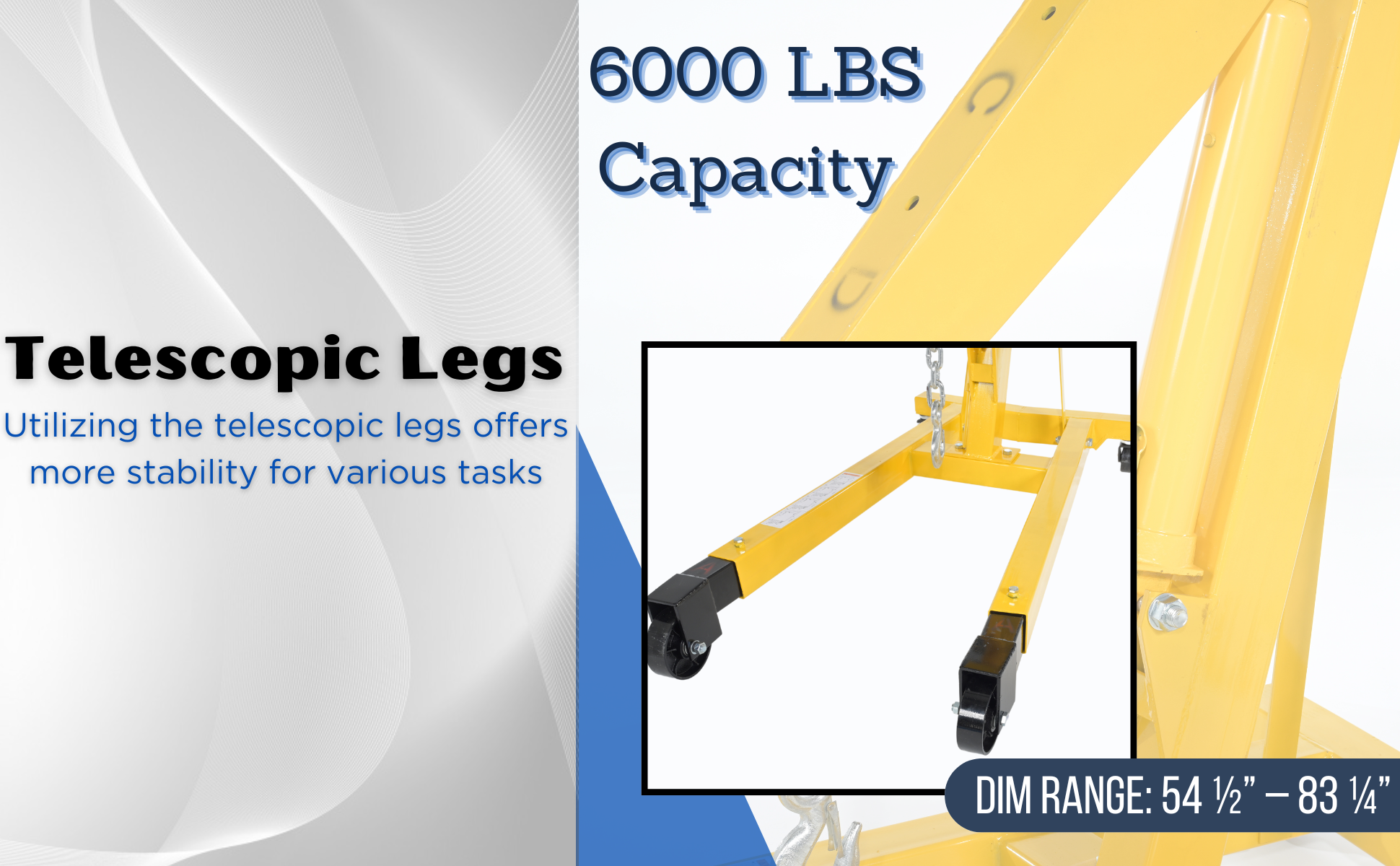 EHN-60-T EHN-60-TSteel Shop Crane Engine Hoist with Telescopic Legs 6000 Lb. Capacity YellowUniform Capacity (lb.): 6,000