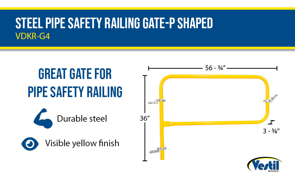 VDKR-G4 VDKR-G4Steel Pipe Safety Railing Gate-P Shaped 48 In. x 36 In. Yell…55
