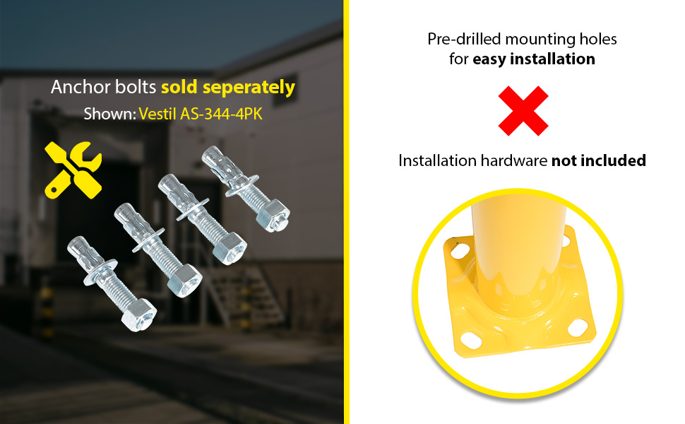 | Steel Pipe Safety Bollard 36 In. x 5-1/2 In. Yellow | Anchor Bolt: AS-344 Anchor Bolt Kit: AS-344-4PK | 29 |