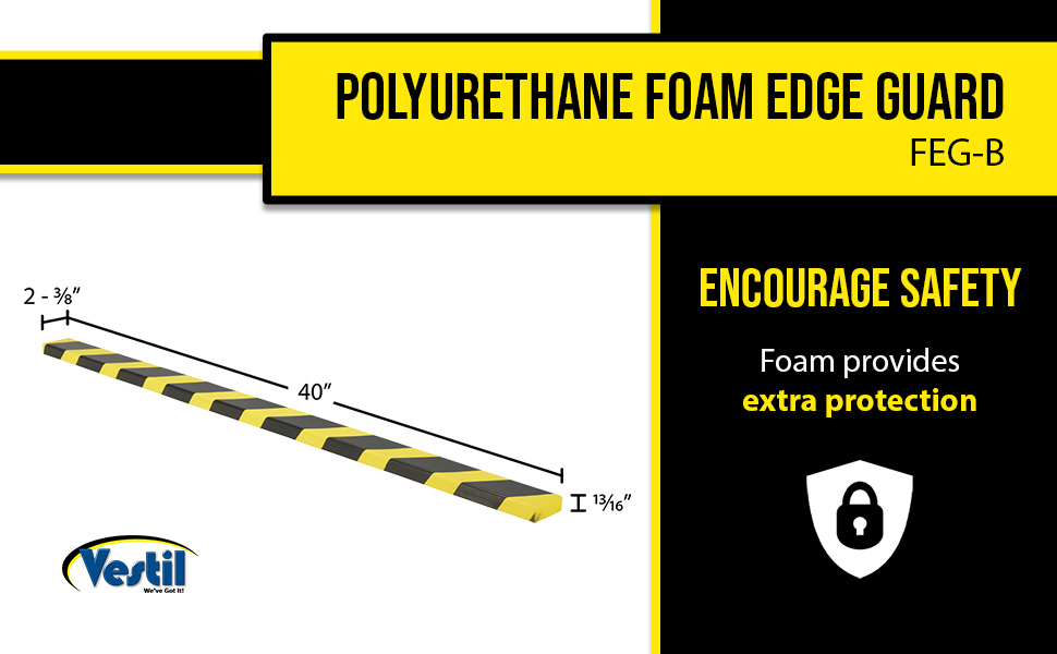 FEG-B FEG-BPolyurethane Foam Edge Guard 40 In. Length x 13/16 In. Height Black / YellowAttachment Method: Self Adhering