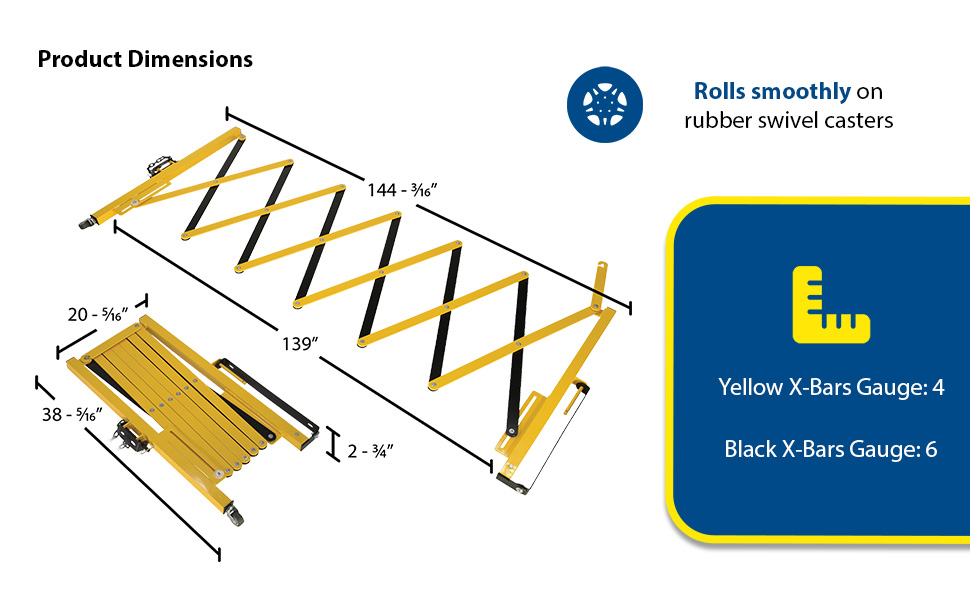 EXGATE-30-C EXGATE-30-CSteel Expand-A-Gate with Casters 144 In. Length YellowOverall Expanded Width (in.): 143-11/16