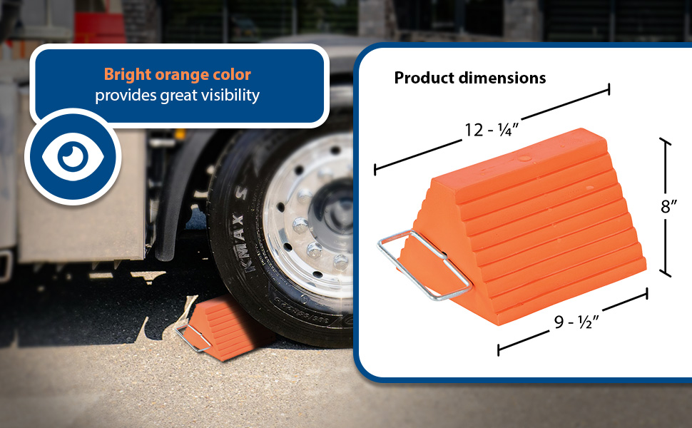 URWC-25-SS URWC-25-SSUrethane Jumbo Wheel Chock with Steel Studs 17 In. x 14-1/2 In. x 14-1/2 In. 30 Ton Capacity OrangeUniform Capacity (tons): 30