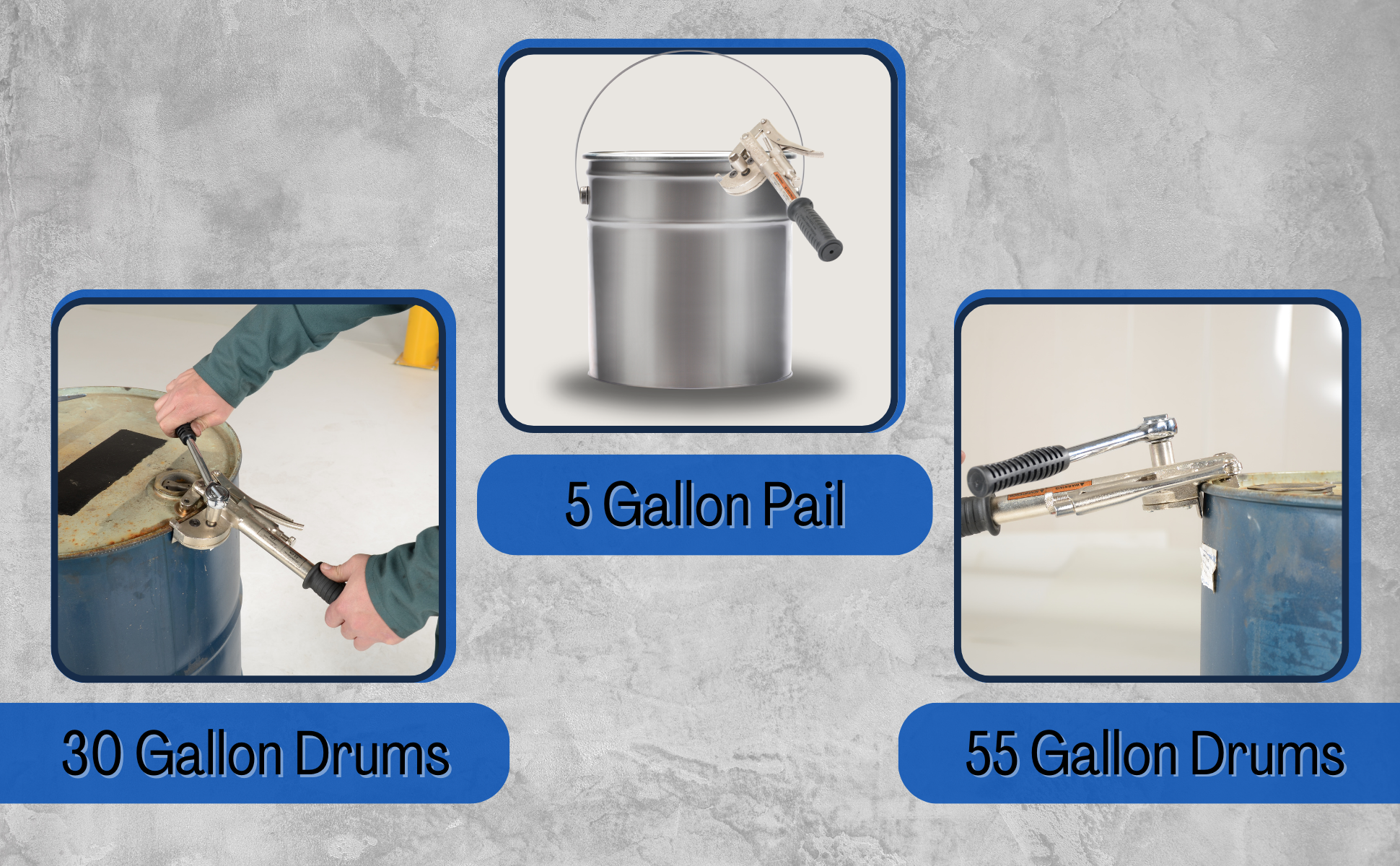 WARNING: Improper use of this drum deheader might result in personal injury or damage to the deheader. DO NOT use a pneumatic or electric impact wrench to operate the deheader ratchet. Replacement blades available separately, model D-HEAD-B. Both styles open 30 and 55 gallon steel drums and 5 gallon pails.
