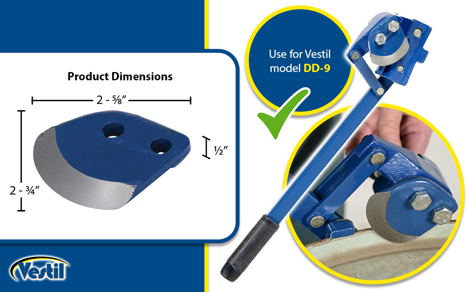 The DD-9 and DD-9-NS can be adjusted to open steel drums with different thicknesses. The blade is angled for maximum penetration and flattens the cut edge so there are no sharp or jagged edges. Replacement blades available. Model DD-9-NS features a bronze, spark resistant alloy.