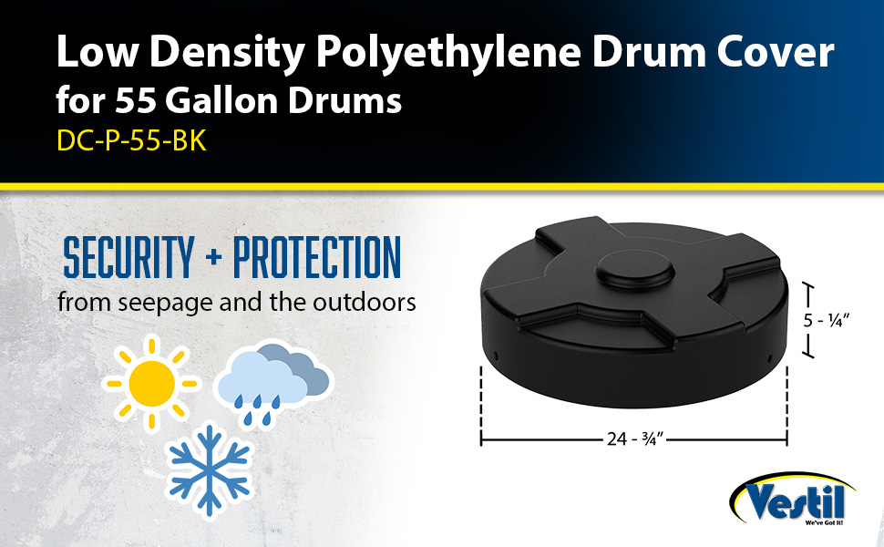 DC-P-55-BK DC-P-55-BKLow-Density Polyethylene Drum Cover 55 Gallon BlackWorks With Steel Drum (gal.): 55
