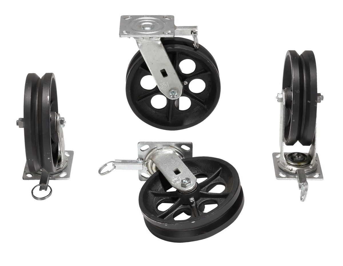 Cast Iron Swivel V-Groove Casters With 4-Position Lock 8 In. x 2 In. For Aluminum Gantry Crane Models