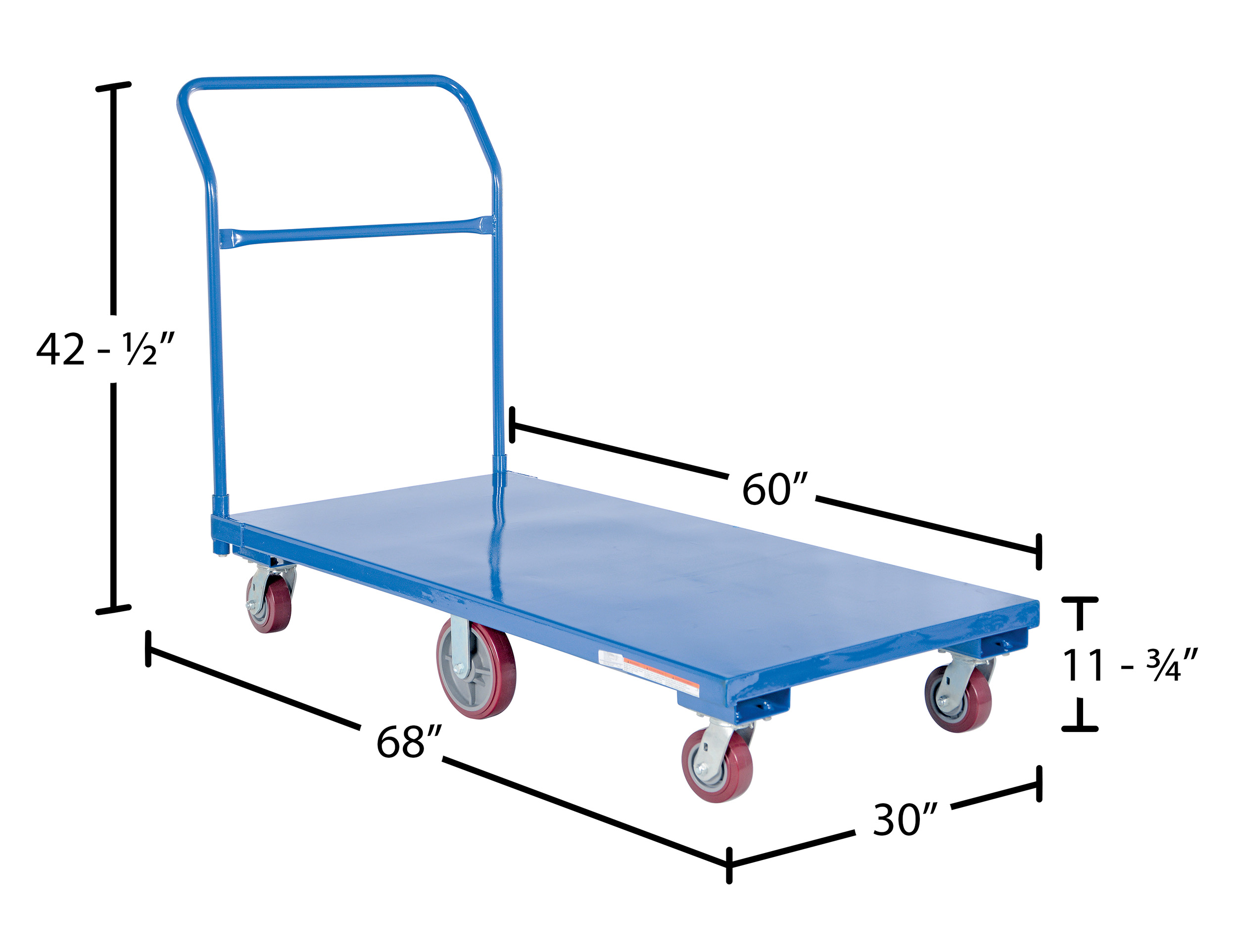 Steel Flat Bed Cart 30 In. x 60 In. 2,000 Lb. Capacity BlueThis heavy duty steel flat bed cart provides long term service. Removable handle. Center caster provides great maneuverability. Ideal for industrial, commercial and warehouse use.