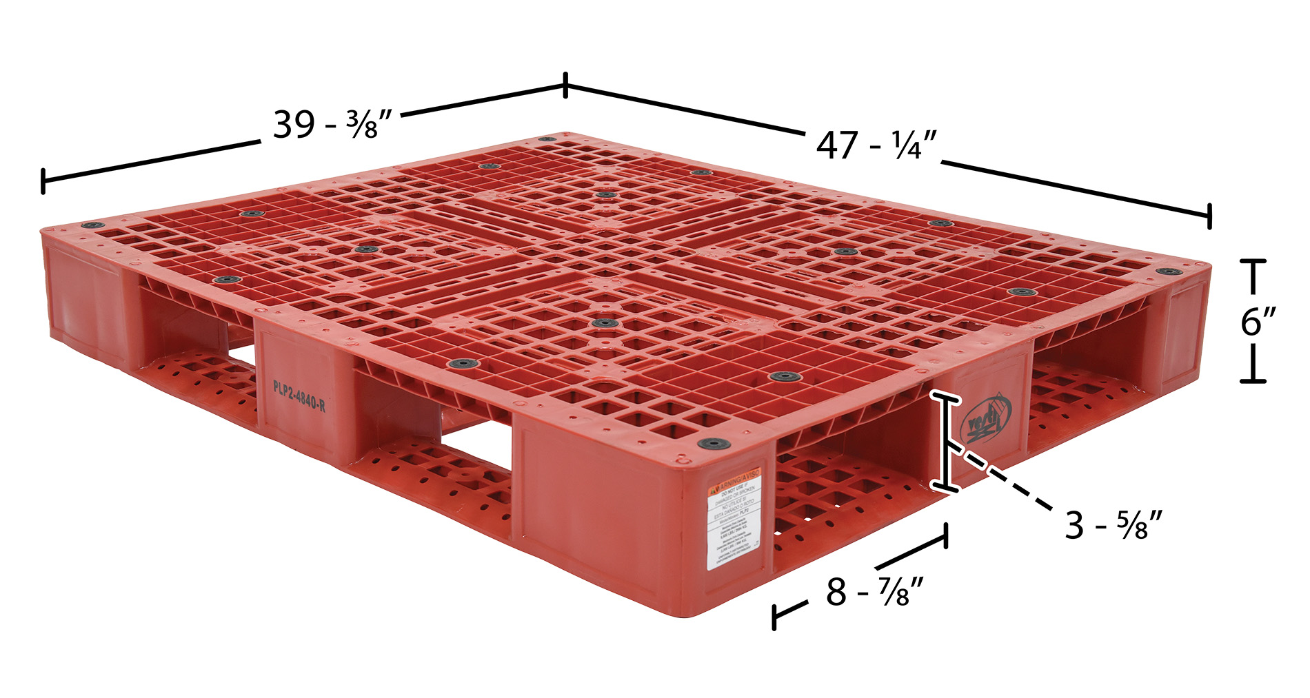 High Density Polyethylene Pallet 39-1/2 In. x 47-3/8 In. x 6 In. 8000 Lb. Capacity Red
