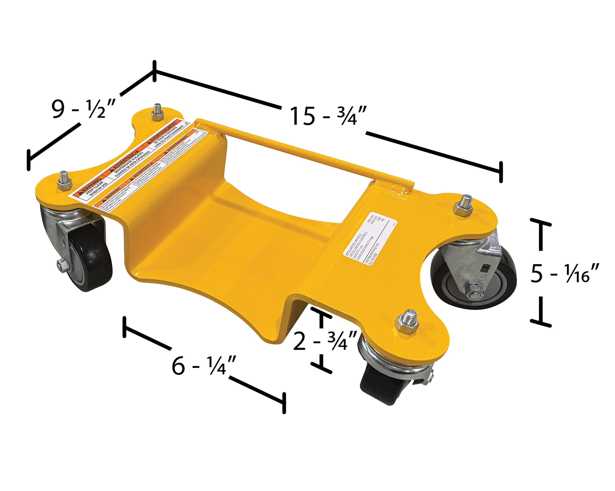 Steel Pallet Rack Lifting Dollies (2 Quantity) 18-1/16 In. x 11-13/16 In. x 5-1/16 In. 1000 Lb. Capacity YellowPallet rack lifting dollies are designed for moving empty fully-assembled pallet racking. These dollies are used with the pallet lifting dolly jack to hold racking frame feet.