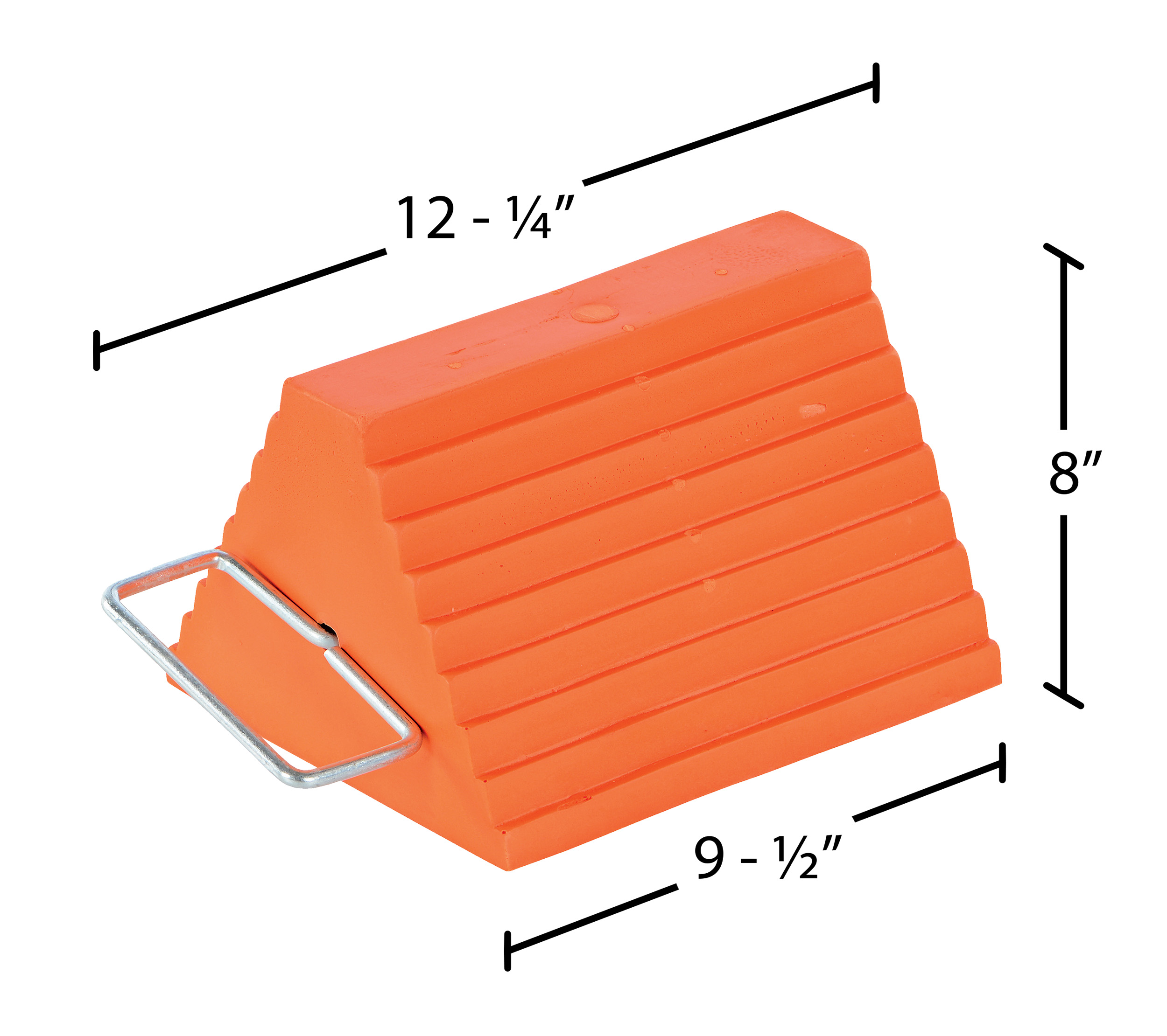 The urethane Wheel Chock with handle is bright orange for greater visibility. Incoming and outgoing drivers can easily see for added safety. Safety tread on chock face provides better grip and reduces slippage.