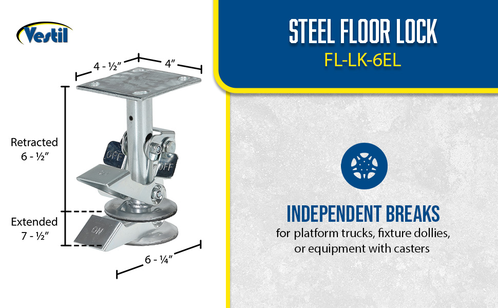 | Steel Top Mount Floor Lock 4-7/8 to 5-5/8 In. Height Silver 1,200 Lb. Capacity | Caster Diameter (in.): 4 Mount Height (in.): 5-5/8 | 4 |