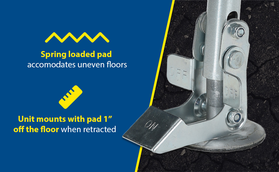 | Steel Right Mount Hand Operated Floor Lock 10 to 12 In. Height Silver | Mounting Height (in.): 10 to 13-7/8 Retracted Height on Bottom Mounting Hole (in.): 10 | 9 |