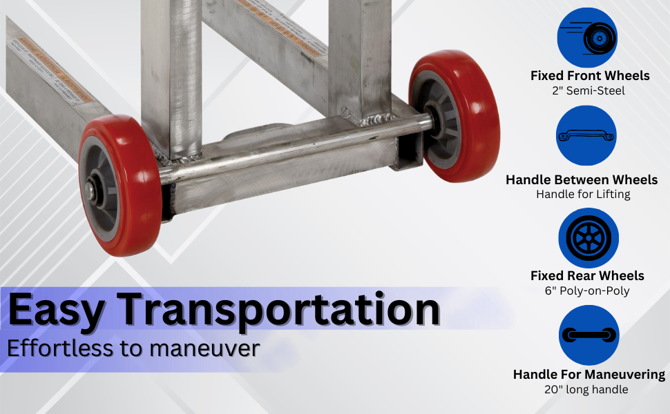 | Aluminum Lite Load Lift With Foot Pump Swivel Casters and Manual Floor Lock 24 In. x 20 In. Platform 400 Lb. Capacity Silver | Uniform Capacity (lb.): 400 Platform Width (in.): 24 | 171 |