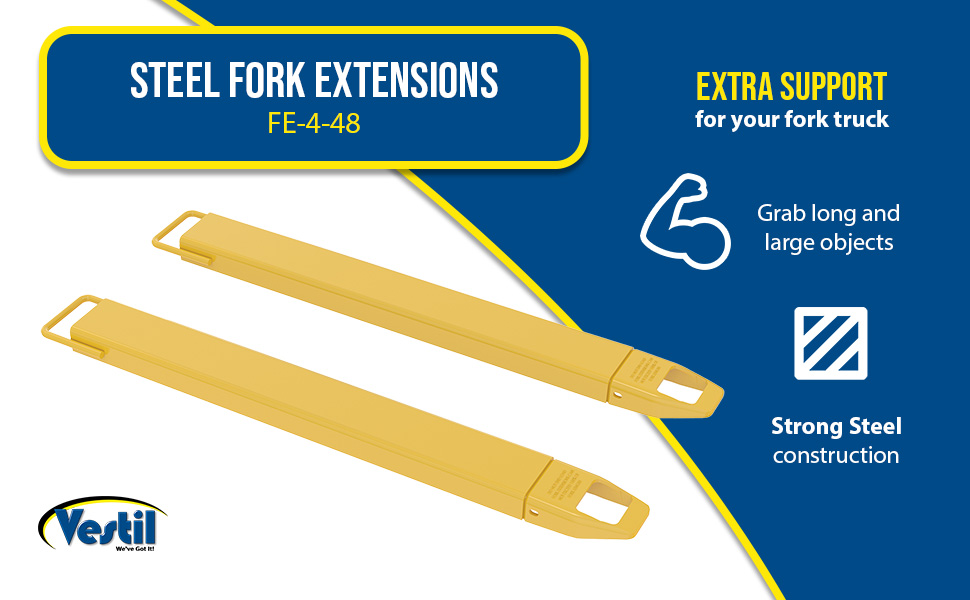 FE-4-48 FE-4-48Steel Fork Extensions 4 In. x 48 In. 4000 Lb. Capacity YellowUniform Capacity Per Pair (lb.): 4,000