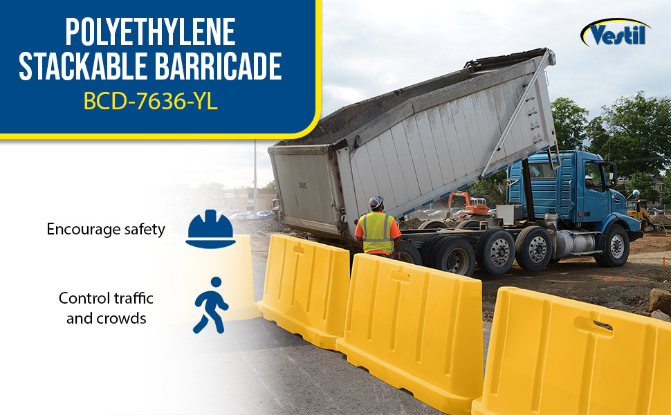 BCD-7636-YL BCD-7636-YLPolyethylene Stackable Barricade 76-1/2 In. x 16 In. x 36 In. YellowMaterial Thickness (in.): 0.15