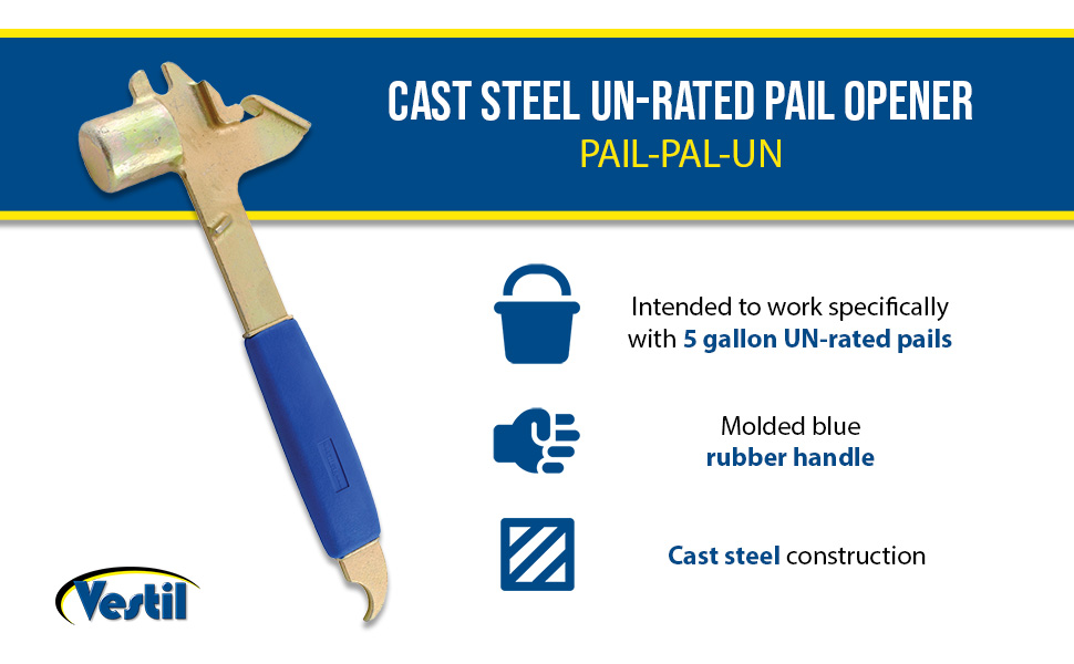 PAIL-PAL-UN PAIL-PAL-UNCast Steel UN Rated Pail Opener 11 In. x 3-1/2 In. x 1-7/8 In. 5 Gallon GoldAccommodates Pail Type: UN Rated 5 Gallon Plastic & Steel