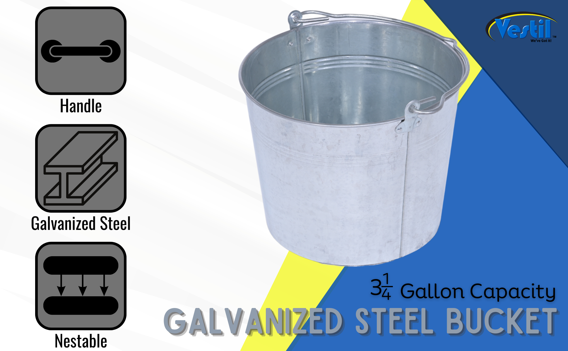 BKT-GAL-325 BKT-GAL-325Galvanized Steel Bucket 3-1/4 Gallon CapacityCapacity (gal.): 3-1/4