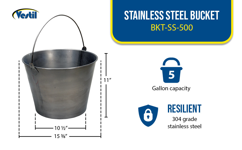 BKT-SS-500 BKT-SS-500Stainless Steel Bucket 5 Gallon CapacityCapacity (gal.): 5