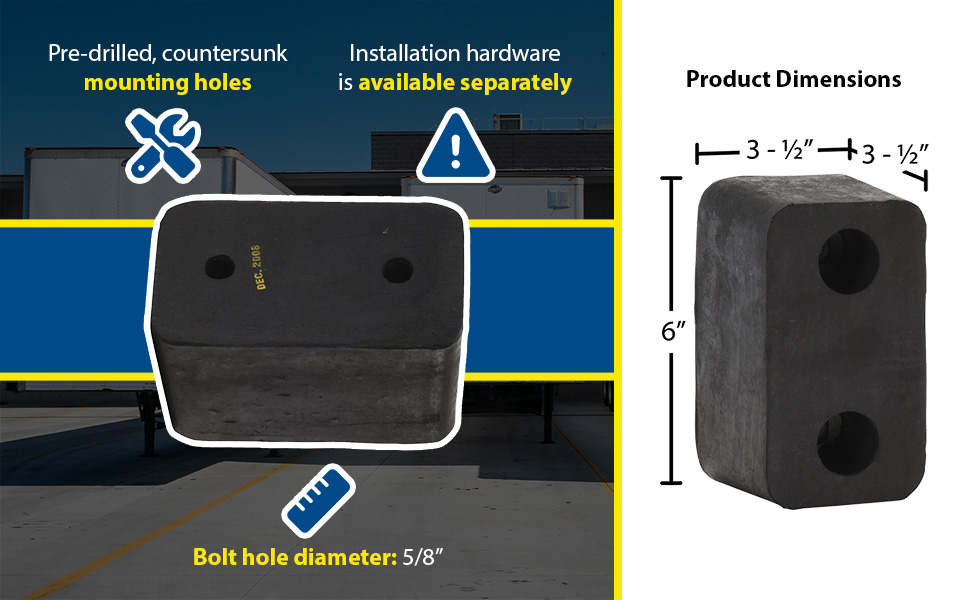 TB-20-2 TB-20-2Rubber Trailer Crane Bumper 6 In. x 3-1/2 In. x 3-1/2 In. 2 Pack BlackBolt Hole Diameter (in.): 5/8