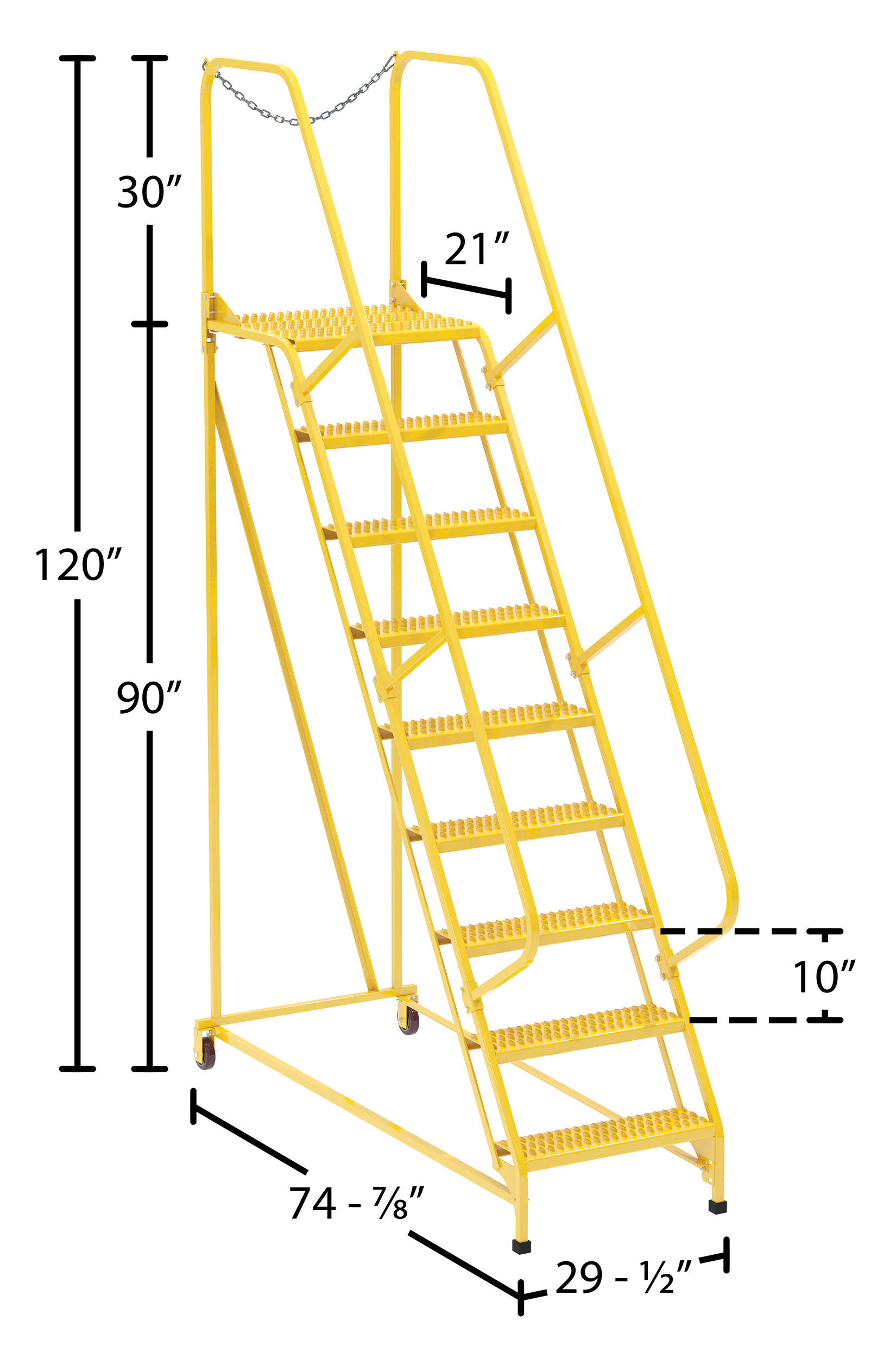 | Top Step Height (in.): 90 | Hand Rail Height (in.): 30 | Top Platform Length (in.): 21 |